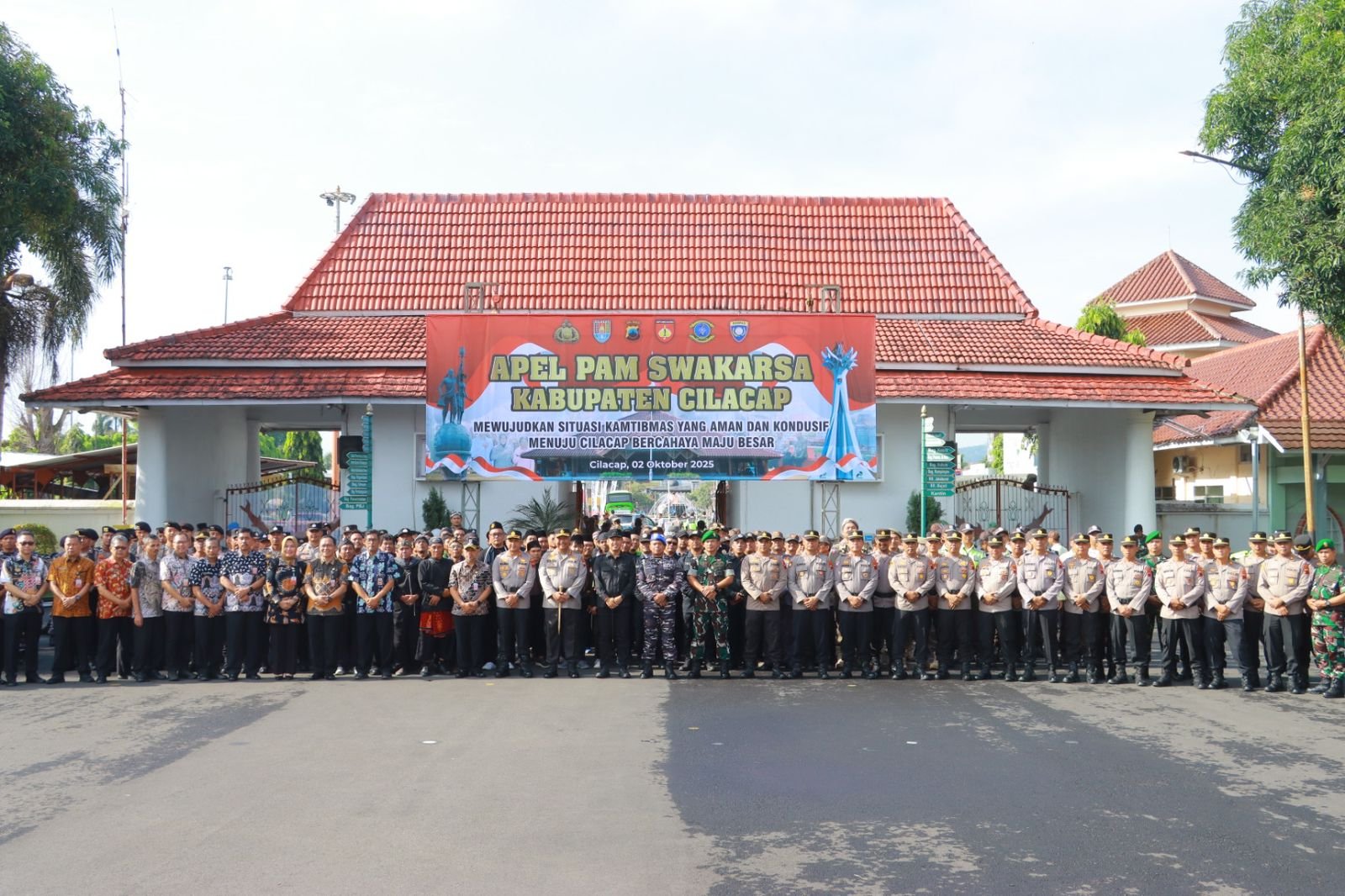 CILACAP ( Jawa Post ) – Pemerintah Kabupaten Cilacap bersama Polresta Cilacap menggelar Apel Pengamanan Swakarsa 2025 di Pendopo Wijayakusuma Sakti, Kamis (2/10/2025). Kegiatan ini melibatkan TNI, Polri, Satpol PP, Linmas, Satpam, hingga elemen masyarakat sebagai upaya memperkuat sinergi menjaga keamanan dan ketertiban masyarakat.