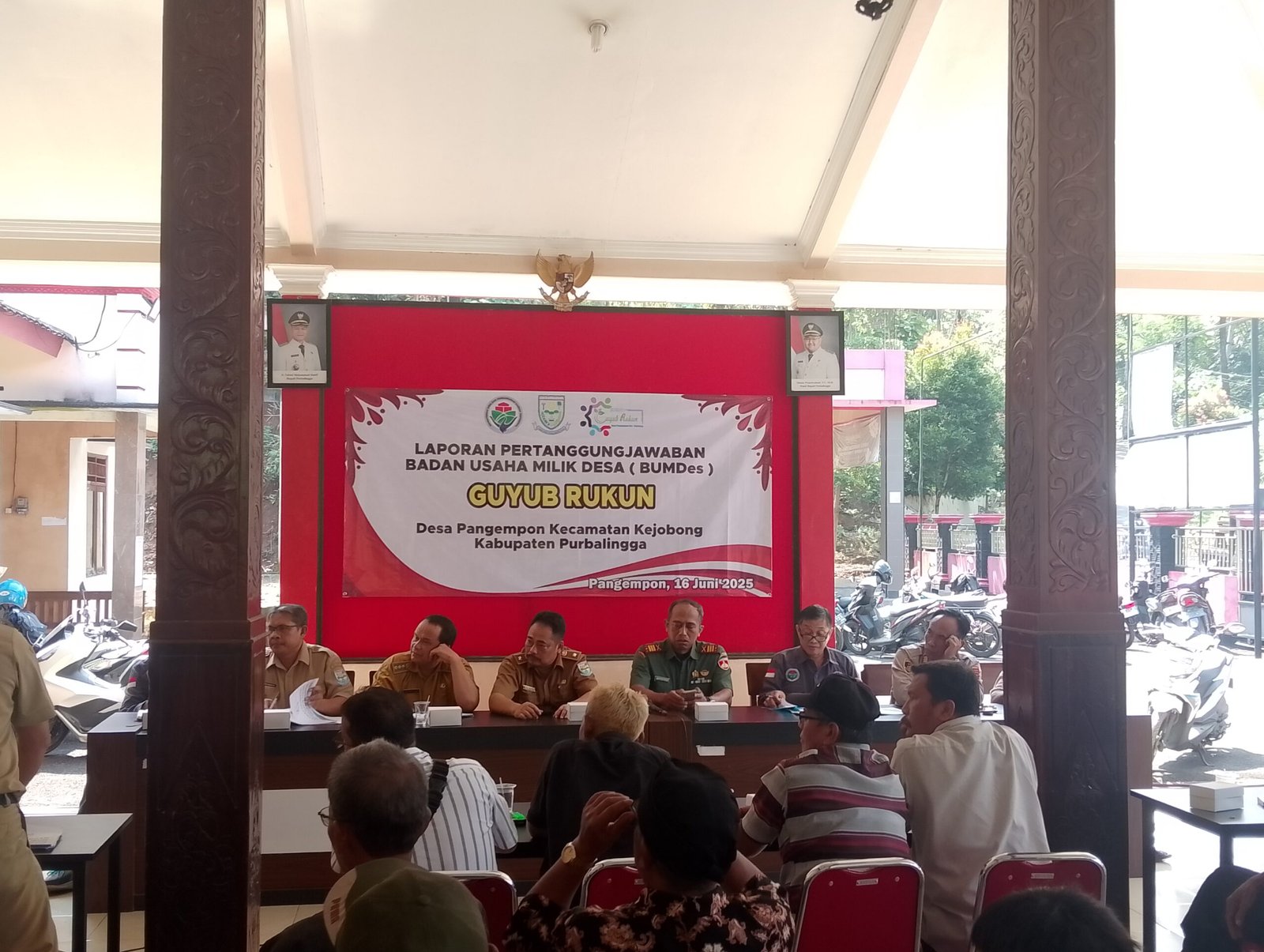 Acara yang berlangsung tertib dan sarat antusiasme ini dihadiri berbagai unsur, mulai dari Tenaga Ahli Kabupaten Purbalingga, Kepala Dinas Dinpermades, Camat Kejobong, Kapolsek, Danramil, Ketua BPD, Ketua LMD, Direktur BUMDes Guyub Rukun, hingga para ketua RT dan RW se-Desa Pangempon.