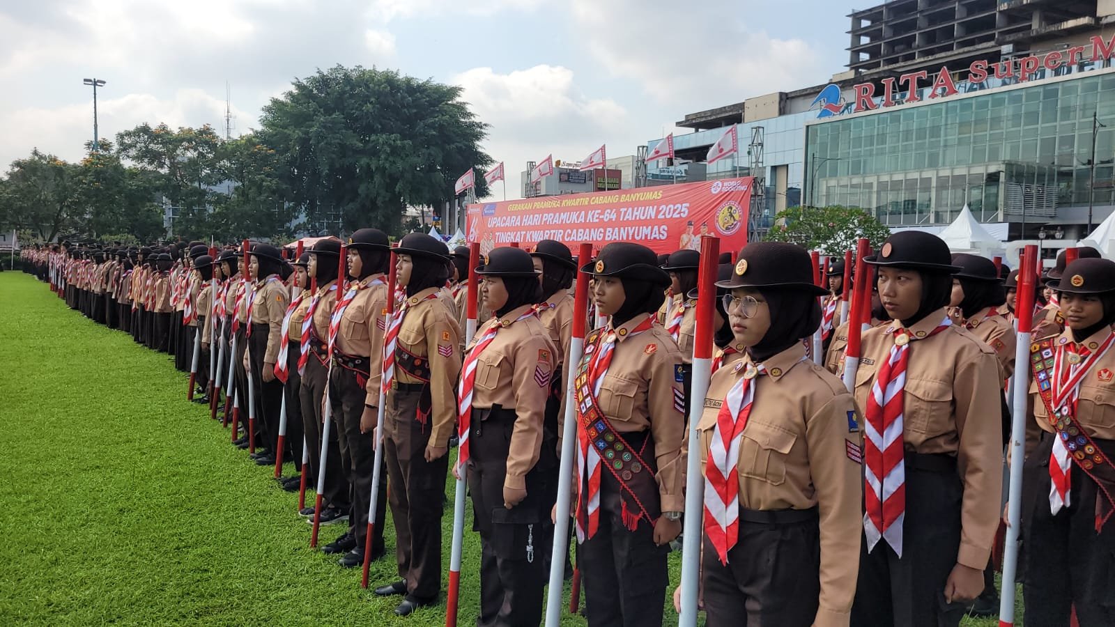 Banyumas ( Jawa Post ) – Ribuan anggota Pramuka mengikuti Upacara Hari Pramuka ke-64 tingkat Kwartir Cabang Banyumas di Alun-alun Purwokerto, Sabtu (20/9/2025). Upacara dipimpin Bupati Banyumas Sadewo Tri Lastiono selaku Ketua Majelis Pembimbing Cabang (Mabicab) dan dihadiri Ketua Kwarda Jawa Tengah Slamet Budi Prayitno, Wakil Bupati Dwi Asih Lintarti, jajaran Forkompimda, serta tamu undangan.