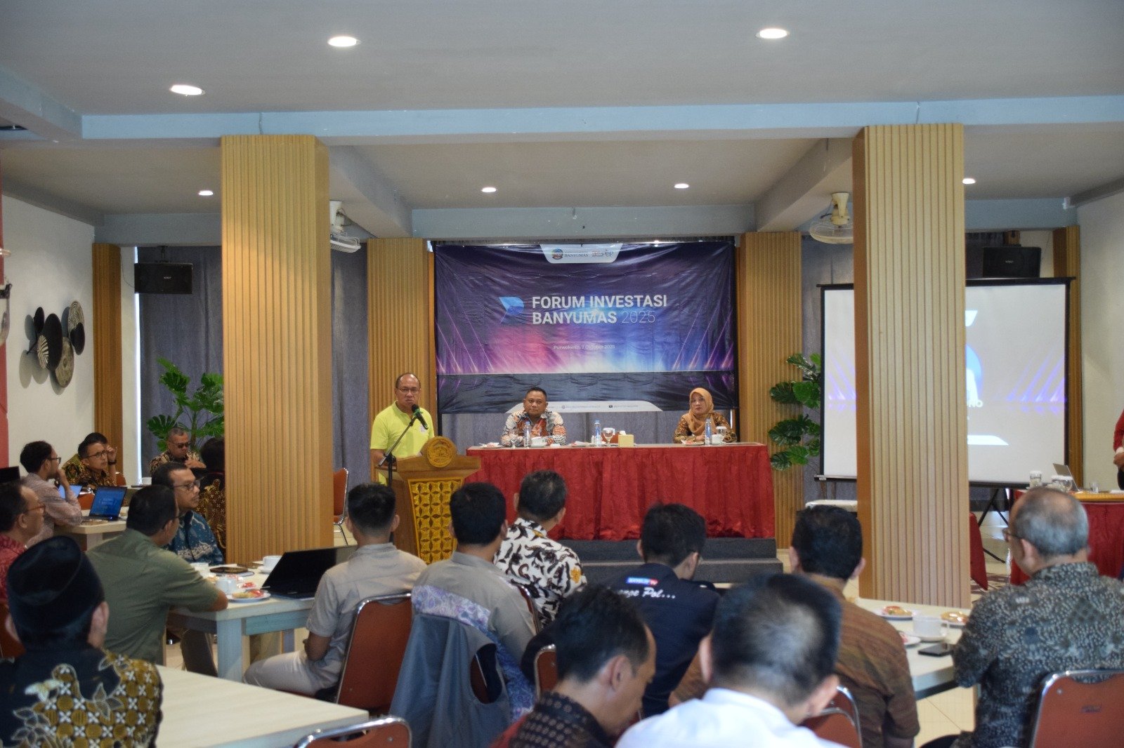 Banyumas (Jawapost.net) — Pemerintah Kabupaten Banyumas menggelar Forum Investasi Banyumas 2025 pada 7 Oktober 2025 di Restoran Taman Pringgading Purwokerto. Kegiatan yang dihadiri oleh Sekretariat Daerah Kabupaten Banyumas Agus Nur Hadie, Rektor Universitas Muhammadiyah Purwokerto, Para Kepala Perangkat Daerah, Direktur PT. Banyumas Investama Jaya, Ketua Umum Kamar Dagang dan Industri (KADIN), Ketua HIPMI, Ketua DPD REI, Ketua PHRI, Ketua ASPIKMAS Kabupaten Banyumas dan perwakilan Media, sebagai ajang strategis untuk memperkuat kolaborasi antara pemerintah daerah, dunia usaha, dan lembaga pendidikan dalam mendorong pertumbuhan investasi yang produktif dan berkelanjutan.