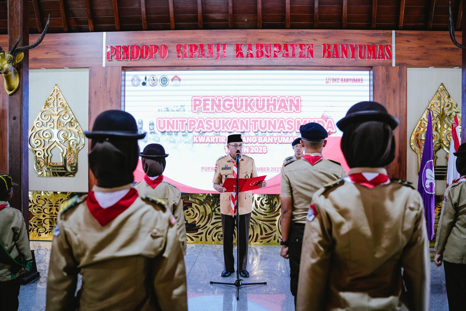 Banyumas ( Jawa Post ) – Bupati Banyumas, Sadewo Tri Lastiono, resmi mengukuhkan 37 anggota Pasukan Tunas Muda (PTM) Kwartir Cabang Banyumas Tahun 2025 di Pendopo Si Panji Purwokerto, Jumat sore (19/9/2025).