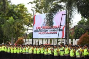Banyumas, Jawapost.net — Bupati Banyumas Sadewo Tri Lastiono memimpin apel kesiapan pelayanan masyarakat menjelang pergantian Tahun Baru 2026 di halaman Mapolresta Banyumas, Rabu (31/12/2025) sore.