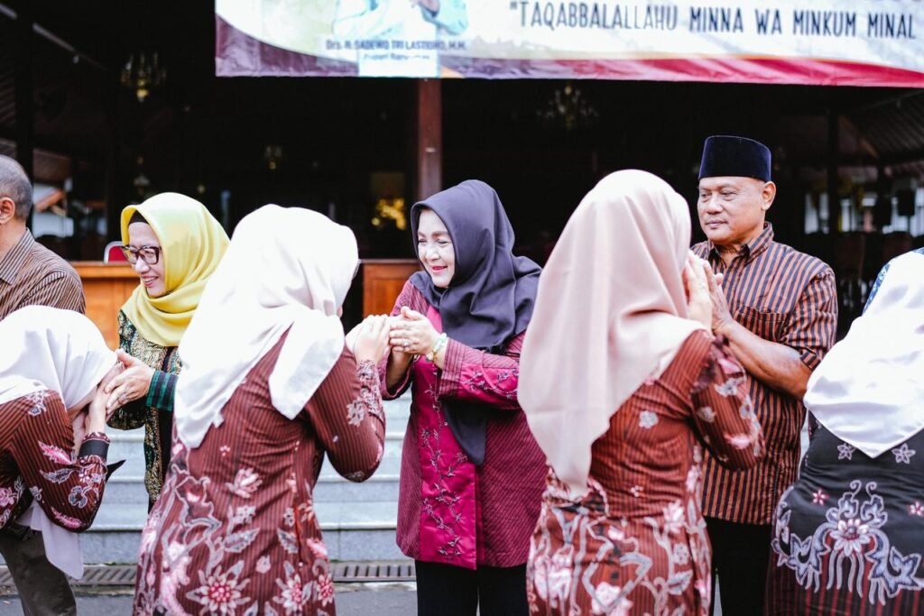Suasana hangat terlihat di akhir kegiatan saat para peserta saling berjabat tangan dan bermaaf-maafan. Dalam kesempatan itu, Bupati didampingi Ny. Eni Sadewo, sementara Wakil Bupati turut didampingi suaminya, Imam Santoso.