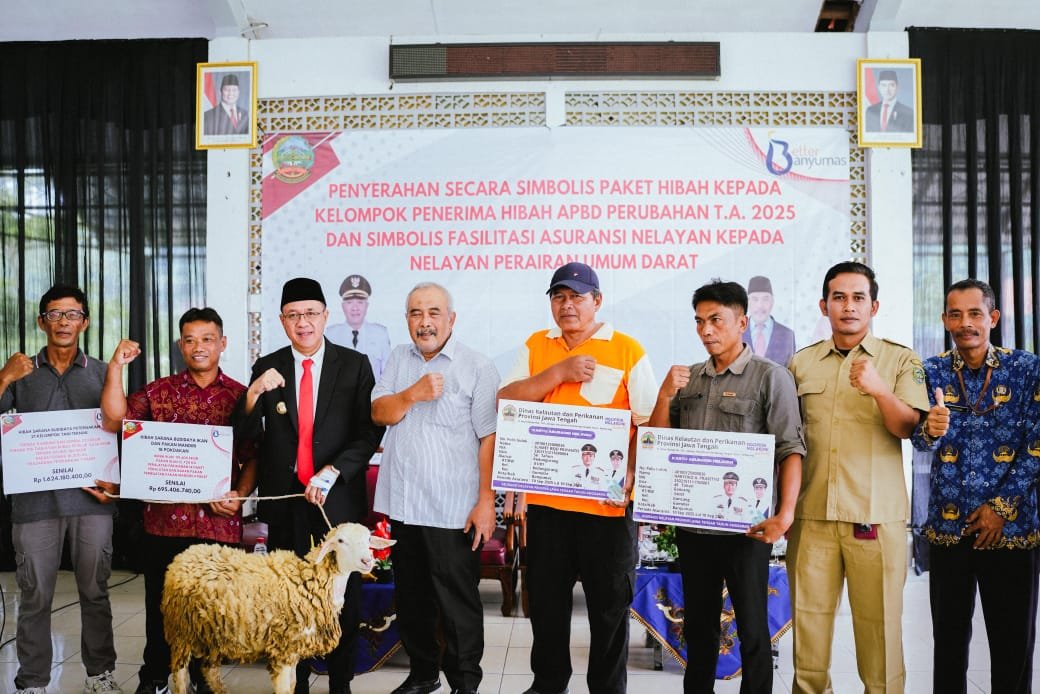 Banyumas, Jawa post.net // Pemkab Banyumas menyalurkan hibah di sektor perikanan dan peternakan senilai lebih dari Rp.1,2 Miliar sekaligus menyerahkan fasilitasi asuransi bagi ratusan nelayan perairan umum darat.