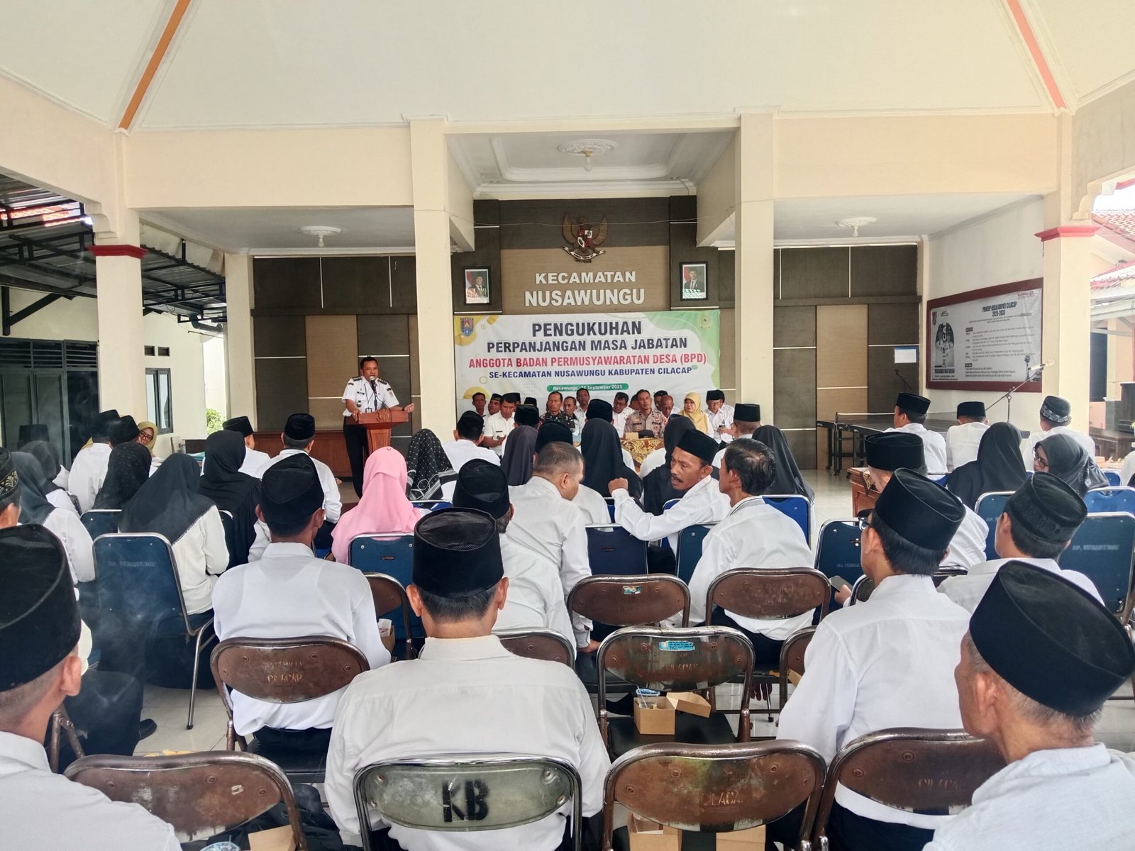 Cilacap, Jawa Post.Net – Pemerintah Kecamatan Nusawungu menggelar acara pengukuhan perpanjangan masa jabatan anggota Badan Permusyawaratan Desa (BPD) se-Kecamatan Nusawungu, Rabu (24/9/2025). Kegiatan yang berlangsung di Pendopo Kecamatan Nusawungu itu dihadiri Camat Nusawungu Heru Kurniawan, S.STP., MM., jajaran pemerintah kecamatan, kepala desa se-Kecamatan Nusawungu, ketua dan anggota BPD, serta perwakilan TNI-Polri.