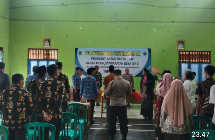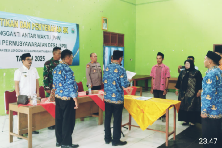 - Pelantikan dan pengambilan sumpah jabatan dilaksanakan di Aula Kecamatan Rakit pada Jumat (17/10/2025). Kegiatan tersebut dihadiri Forkompimcam Rakit, perangkat desa dari dua desa terkait, serta Kepala KUA Rakit yang memimpin doa.