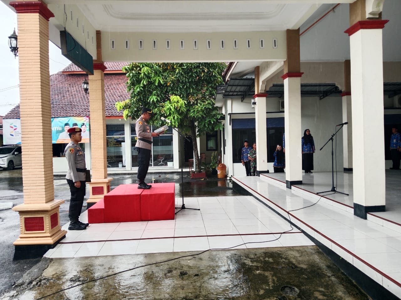 CILACAP (Jawapost.net) — Upacara peringatan Hari Sumpah Pemuda ke-97 di Kecamatan Nusawungu, Kabupaten Cilacap, berlangsung khidmat meski diguyur hujan deras pada Selasa (28/10/2025).
