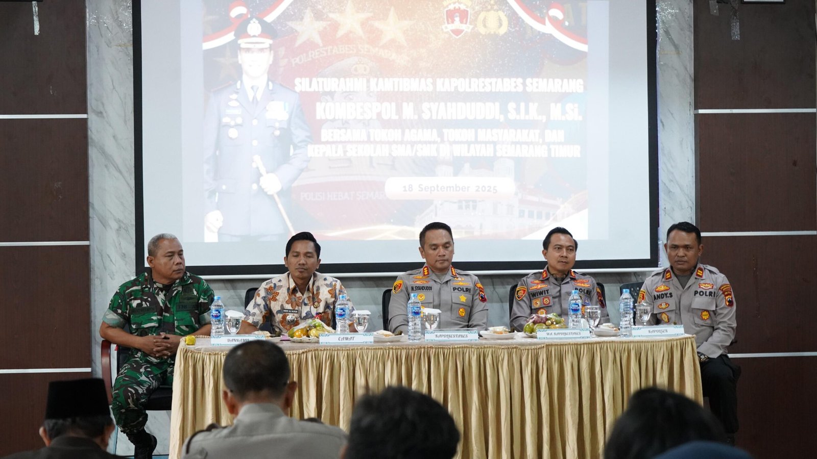 Semarang (Jawa Post) – Kapolrestabes Semarang, Kombes Pol M Syahduddi, menekankan pentingnya sinergi tiga pilar bersama masyarakat dalam menjaga keamanan dan ketertiban di wilayah Semarang Timur. Pesan itu disampaikan saat safari Kamtibmas di Aula Kecamatan Semarang Timur, Kamis (18/9/2025), yang dihadiri sekitar seratus peserta dari unsur Forkopimcam, perangkat kelurahan, kepala sekolah, tenaga kesehatan, hingga tokoh masyarakat dan pemuda.