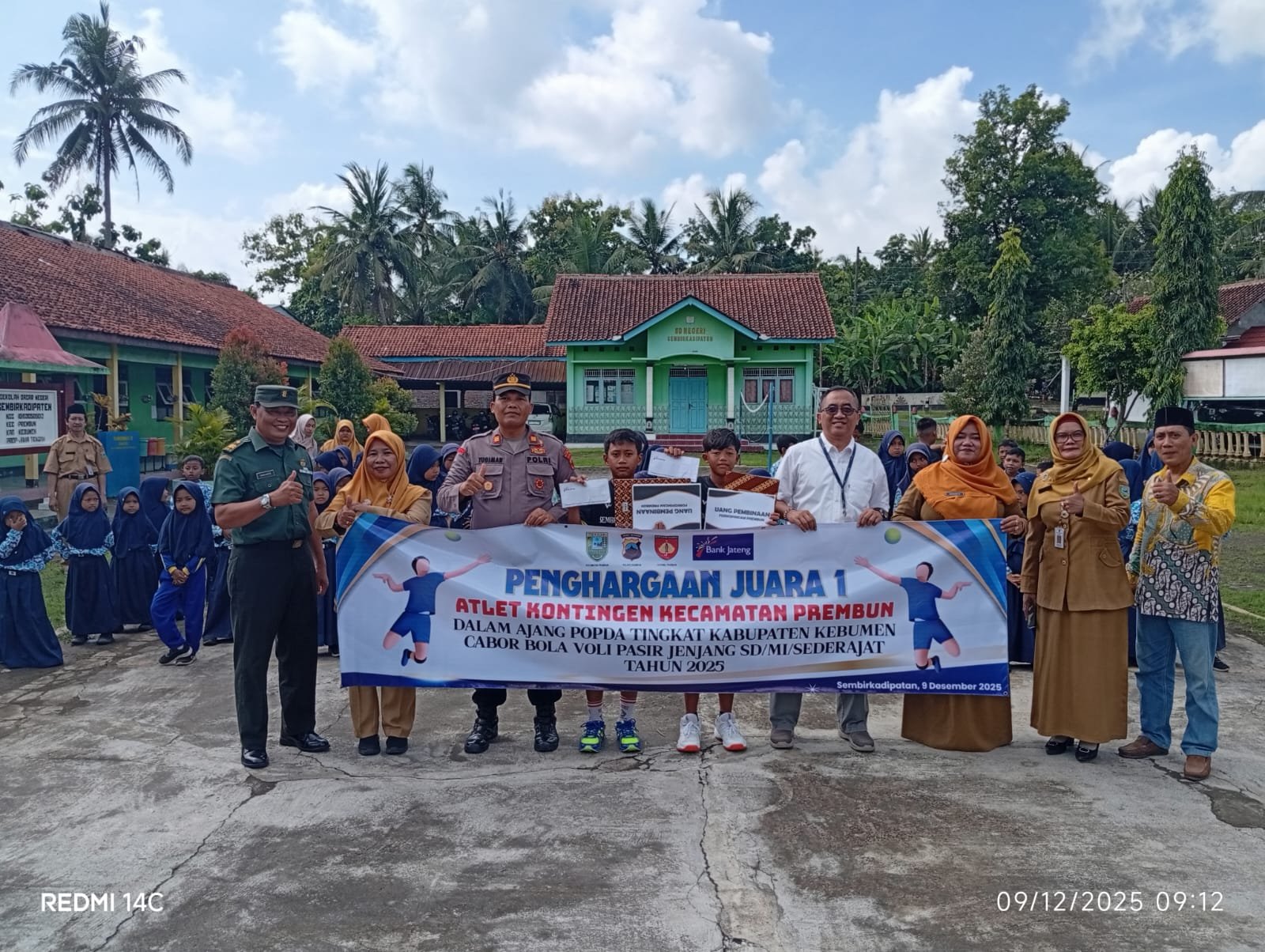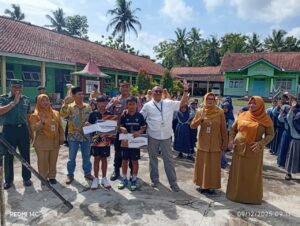Kebumen, Jawapost.net — Kapolsek Prembun AKP Tugiman bersama unsur Forkopimcam Prembun dan Bank Jateng memberikan penghargaan kepada dua siswa SD Sembirkadipaten yang meraih Juara I cabang olahraga voli pasir pantai tingkat Kabupaten Kebumen. Kegiatan berlangsung Selasa, 9 Desember 2025.