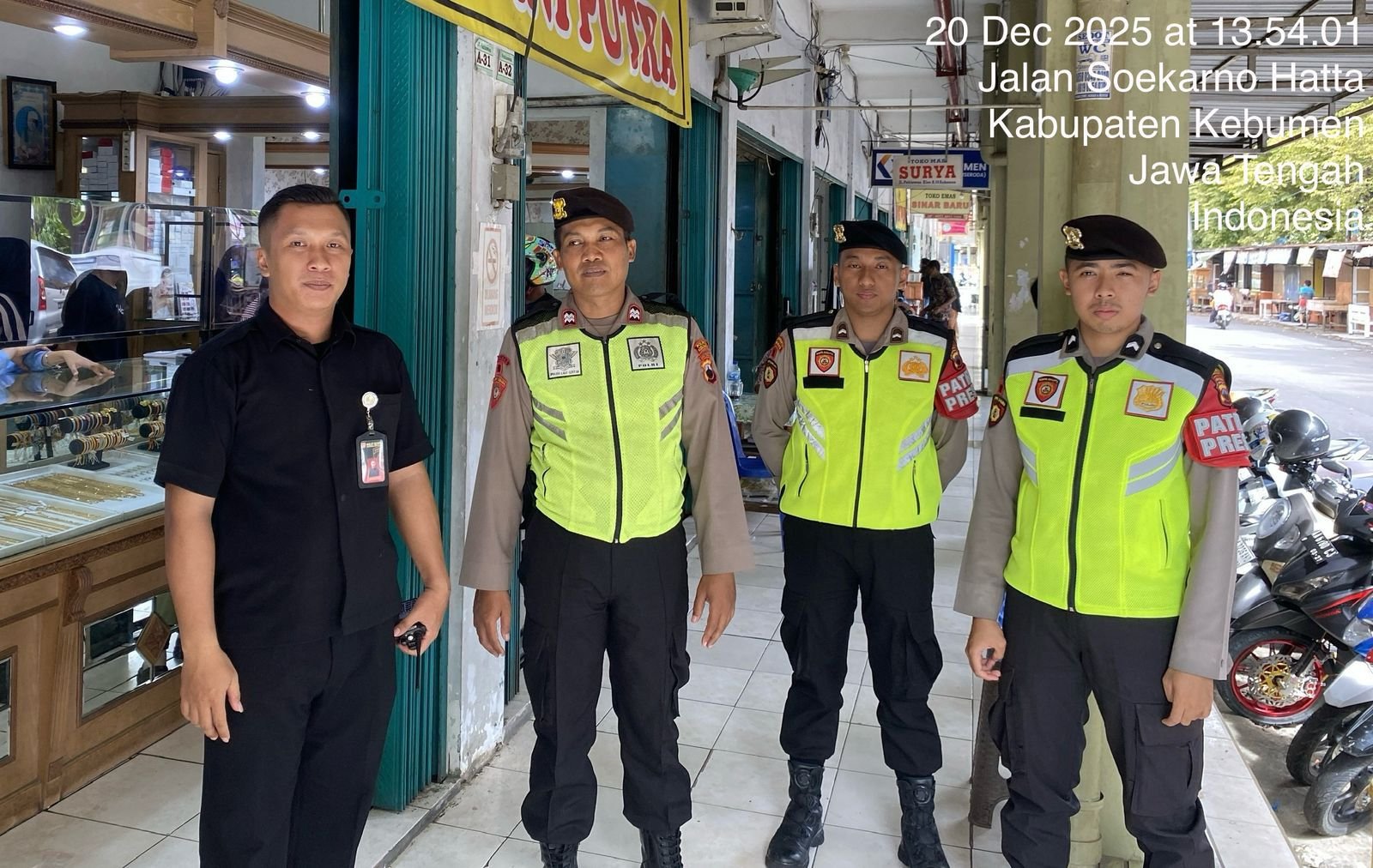 Patroli dilaksanakan oleh Satuan Samapta Polres Kebumen dengan menyasar pusat keramaian, kawasan kuliner, perbankan, tempat ibadah, hingga pos pengamanan Nataru, Selasa (23/12/2025).