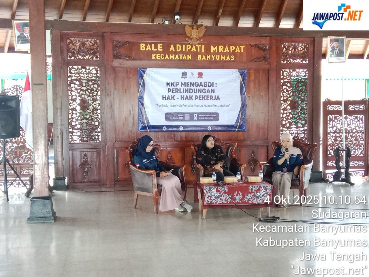 BANYUMAS, JAWA POST.NET — Mahasiswa Universitas Harapan Bangsa (UHB) Purwokerto menggelar kegiatan sosialisasi Komunitas Kajian Penulisan (KKP) bertema Perlindungan Hak-Hak Pekerja. Acara ini diikuti puluhan pelaku usaha ekonomi kreatif dan berlangsung di Pendopo Bale Adipati Mrapat, Kecamatan Banyumas, Kabupaten Banyumas, pada Sabtu (4/10/2025).