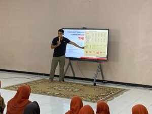 Dalam sesi materi, Lettu Inf Ilham memaparkan persyaratan masuk Akademi Militer, jenjang kepangkatan, hingga kehidupan prajurit dalam bertugas.