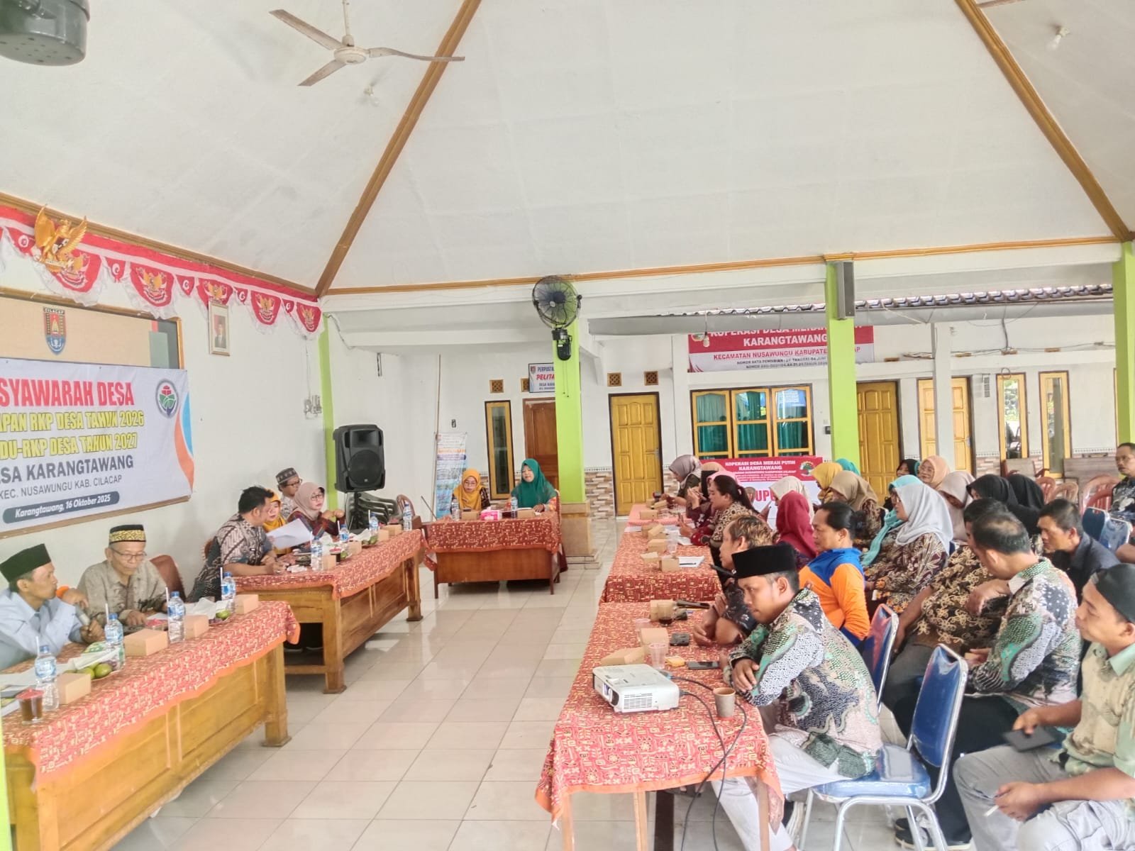 CILACAP, JAWAPOST.NET  – Pemerintah Desa Karang Tawang, Kecamatan Nusawungu, Kabupaten Cilacap, menggelar Musyawarah Desa (Musdes) untuk menetapkan Rencana Kerja Pemerintah Desa (RKPDes) Tahun 2026 serta Daftar Usulan RKPDes (DU-RKPDes) Tahun 2027. Kegiatan ini berlangsung di Pendopo Balai Desa Karang Tawang, Kamis (16/10/2025).