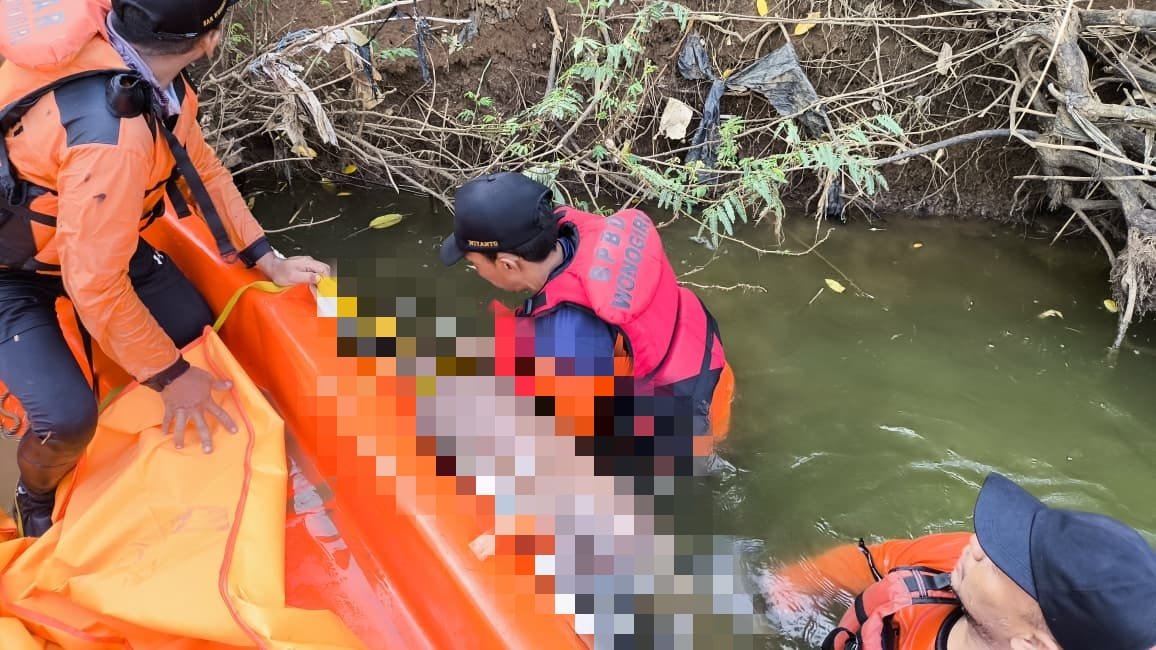 Hampir 24 jam berselang, korban akhirnya ditemukan sekitar pukul 14.45 WIB dalam kondisi tak bernyawa di pinggir aliran Bengawan Solo, sekitar 500 meter dari titik awal diduga tenggelam.