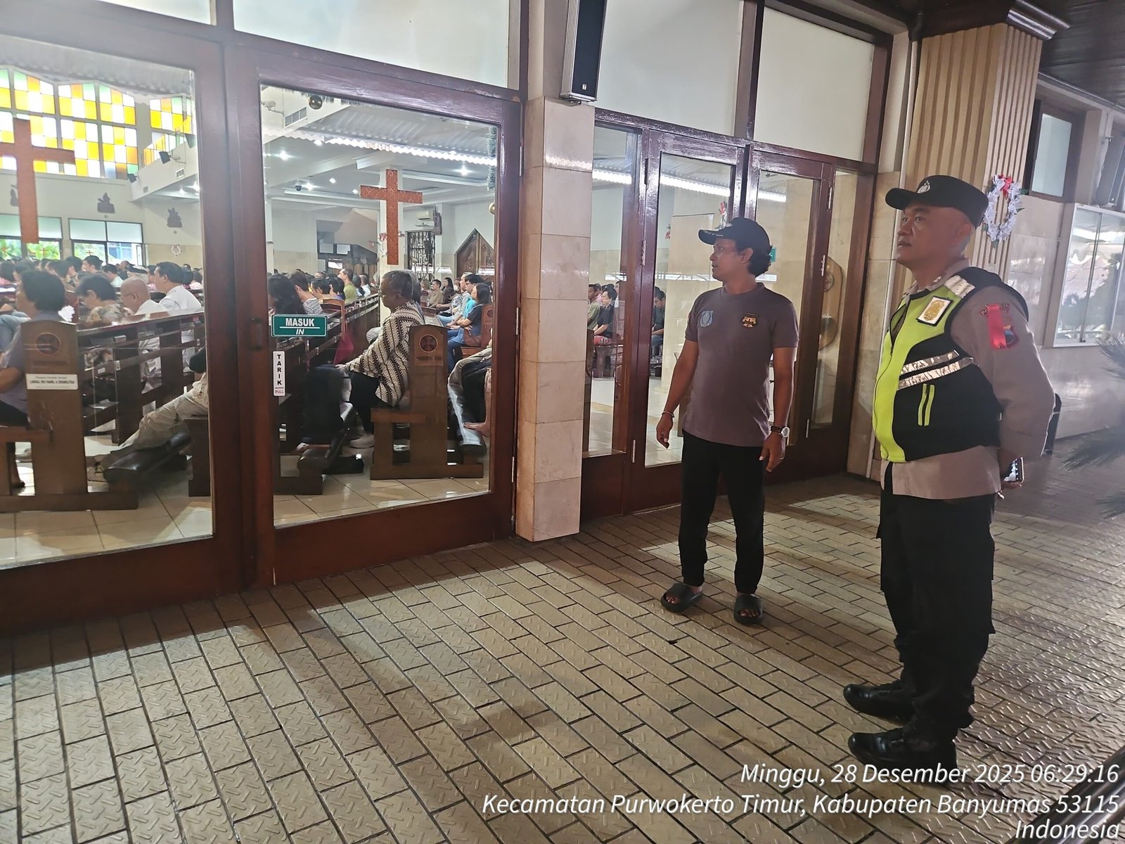 Banyumas, Jawapost.net — Pelaksanaan Misa Mingguan pagi umat Katolik di Gereja Katedral Banyumas berlangsung aman, tertib, dan kondusif di bawah pengamanan personel Polresta Banyumas, Minggu (28/12/2025).