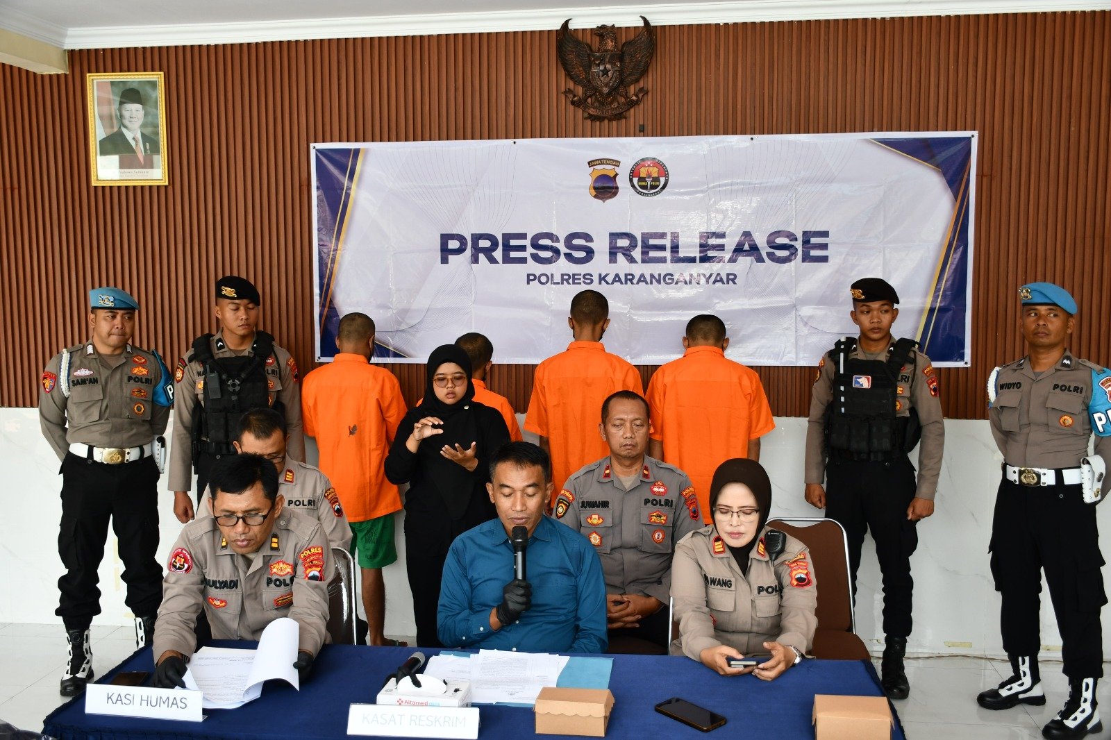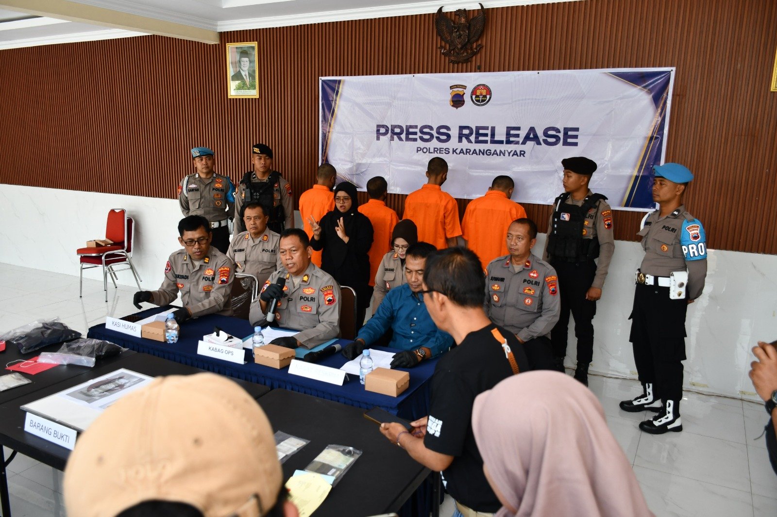 Konferensi pers pengungkapan kasus digelar di Aula Jananuraga Polres Karanganyar, Selasa (4/11/2025).