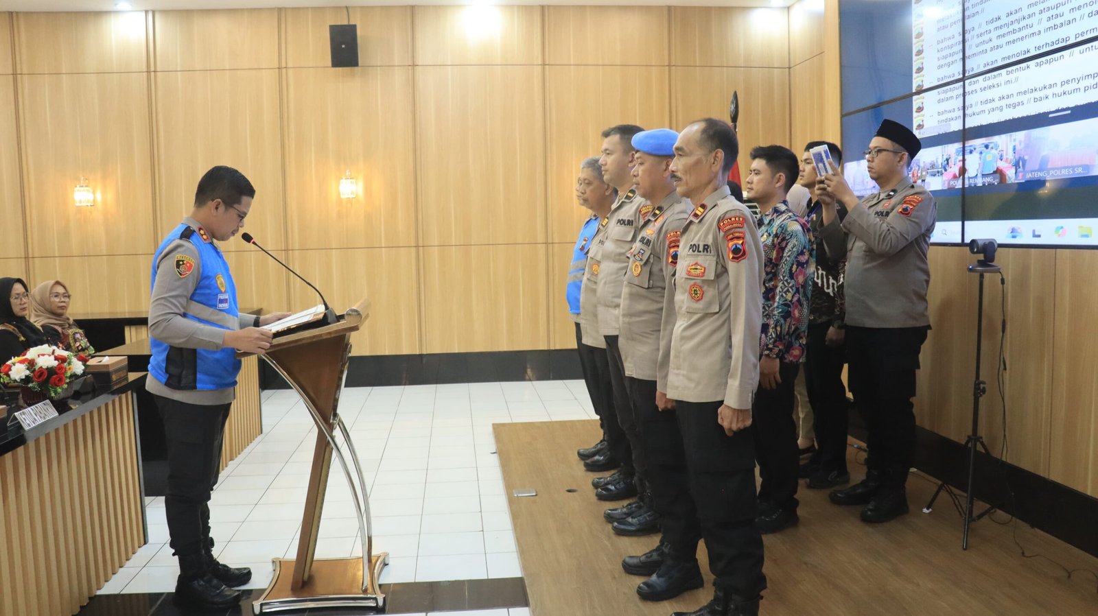 Selanjutnya, Kapolres memimpin pengambilan sumpah panitia penerimaan Bintara Brimob TA 2026. Sumpah diikuti oleh seluruh panitia internal, pengawas eksternal, orang tua, dan para calon siswa.