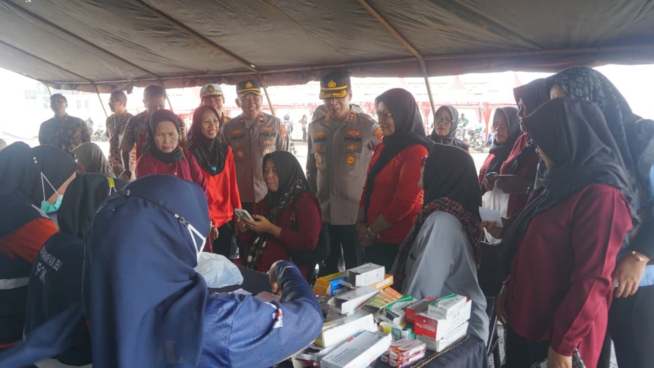 Selain layanan kesehatan dan servis gratis, Polres juga menyediakan gerakan pangan murah berupa beras SPHP serta sosialisasi safety riding dengan hadiah helm berstandar SNI.