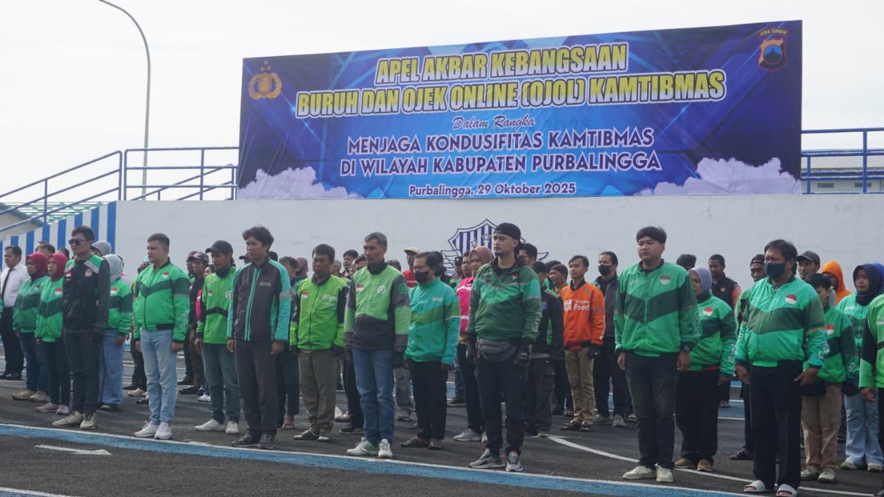 Kegiatan ini digelar usai Apel Akbar Kebangsaan Buruh dan Ojol Kamtibmas di halaman Satpas Prototipe Polres Purbalingga.