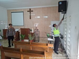 BANYUMAS, Jawapost.net — Polsek Baturraden Polresta Banyumas melakukan sterilisasi di Gereja Kristen Indonesia (GKI) Desa Kemutug Lor, Banyumas, Minggu (21/12/2025).
