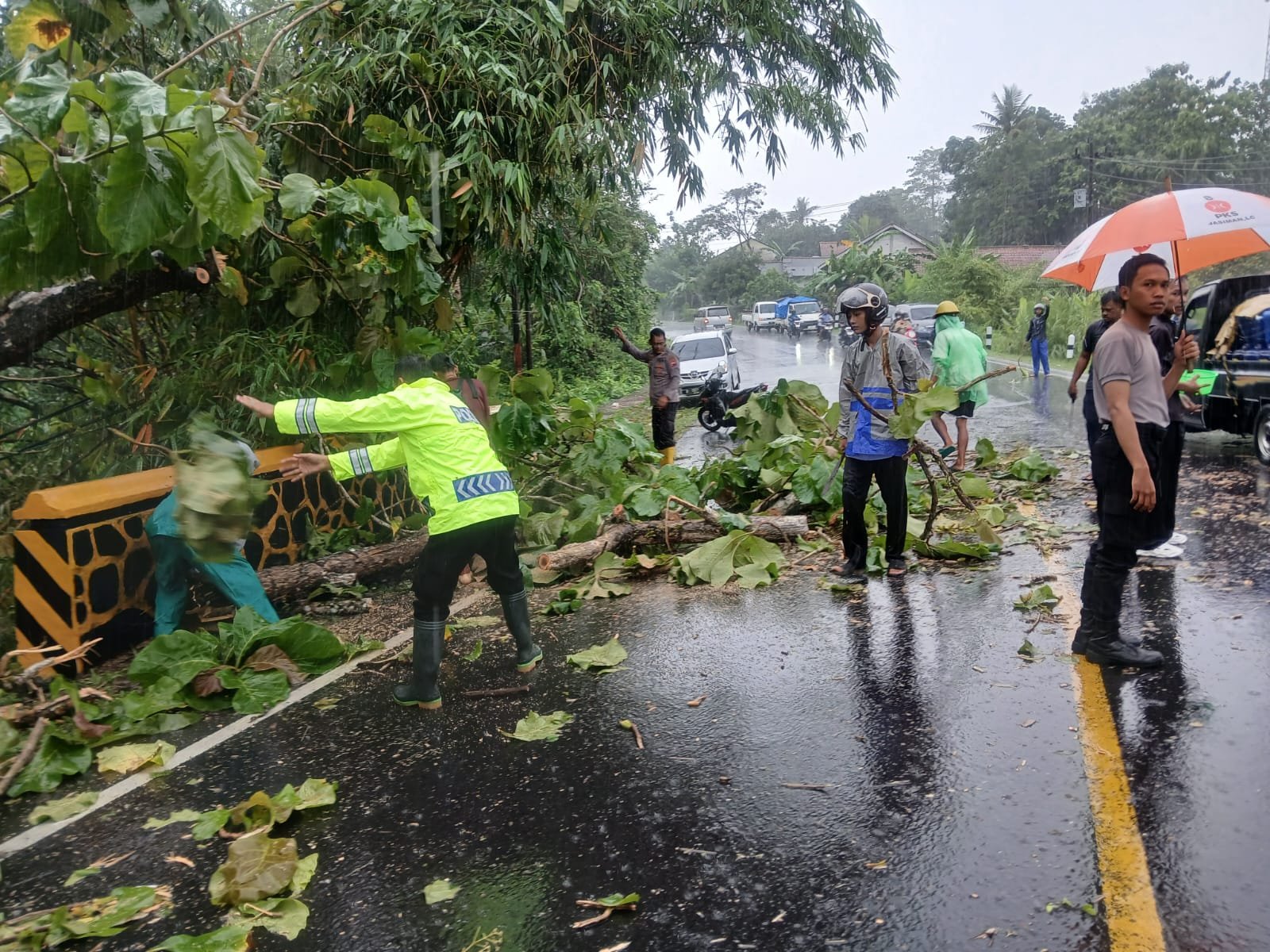 Ia menjelaskan, tumbangnya pohon tersebut disebabkan cuaca ekstrem yang melanda wilayah setempat. Masyarakat diimbau untuk tetap waspada terhadap potensi pohon tumbang maupun tanah longsor selama musim penghujan.
