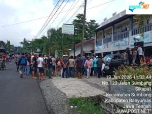 BANYUMAS, JAWAPOST.net — Ratusan warga yang tergabung dalam Aliansi Masyarakat Peduli Lingkungan menggelar aksi demonstrasi menuntut penutupan aktivitas tambang Galian C di Dusun Blembeng, Desa Gandatapa, Kecamatan Sumbang, Kabupaten Banyumas, Senin (19/1/2026).