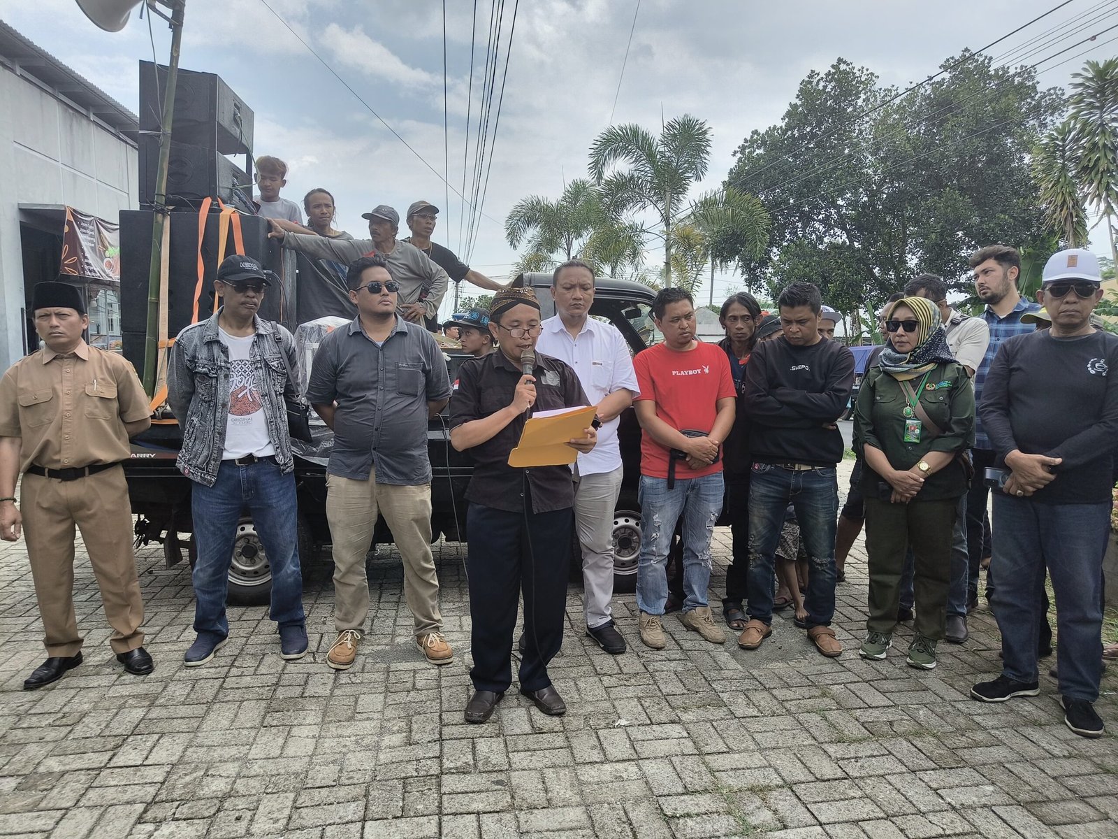 Aksi dimulai dengan konvoi kendaraan roda dua dan roda empat yang berkeliling desa sebelum bergerak menuju lokasi tambang di kaki Gunung Slamet. Massa kemudian melanjutkan unjuk rasa dengan orasi di depan balai desa setempat, menyuarakan keberatan atas aktivitas pertambangan yang dinilai kian meresahkan.