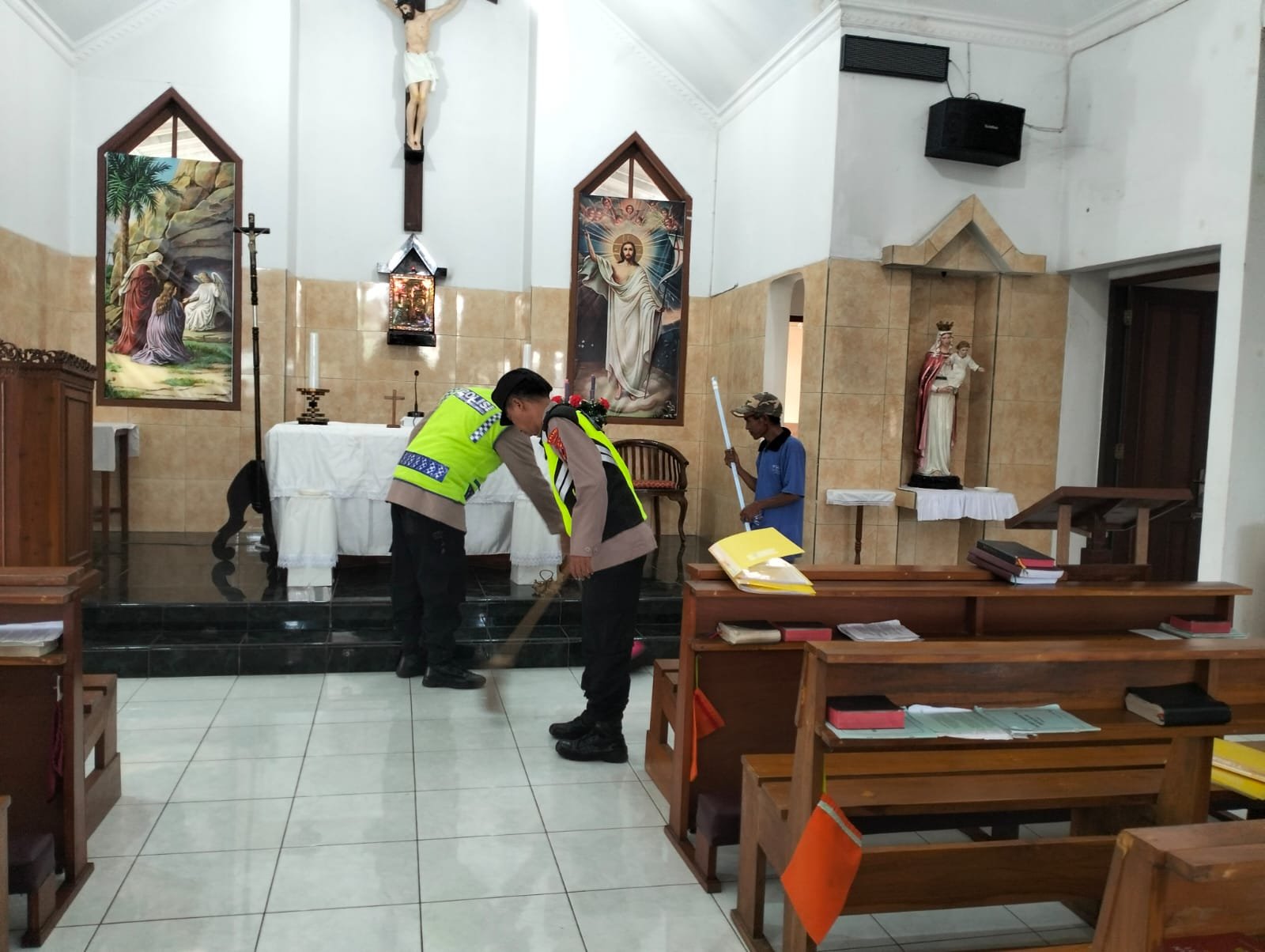 Dalam kegiatan tersebut, personel Polsek Bukateja bersama jemaat gereja melakukan kerja bakti membersihkan area dalam dan luar gereja. Selain itu, kepolisian juga menyerahkan bantuan berupa alat kebersihan.