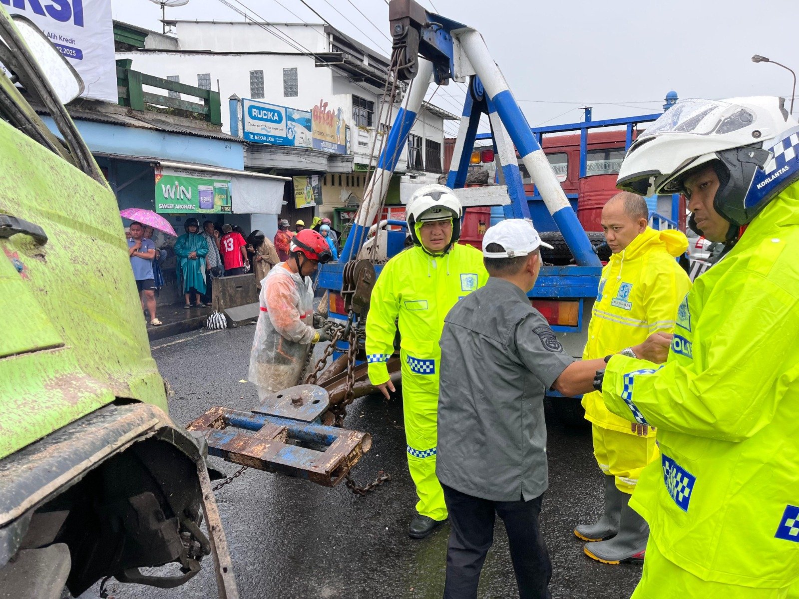 Kecelakaan melibatkan truk tronton bernomor polisi T-9167-PO yang dikemudikan M.A.K. (29), warga Kabupaten Bandung.
