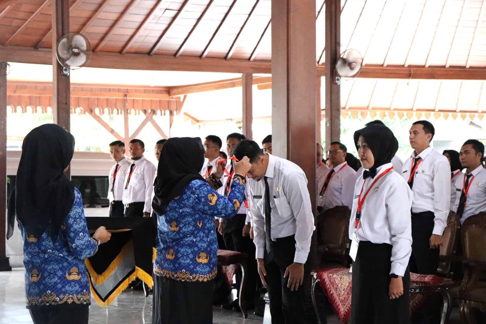 Penutupan Latsar digelar di Pendopo Si Panji Purwokerto, Selasa (17/12/2025). Wakil Bupati Banyumas Dwi Asih Lintarti secara simbolis melepas kalung kepesertaan sebagai tanda berakhirnya rangkaian pelatihan yang telah berlangsung sejak September 2025.